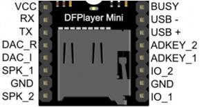MP3语音播放模块是一款小巧的音频功能模块,通过串口的指令控制,依然能奏出美妙的旋律。该功能模块的引脚分布如图4所示。