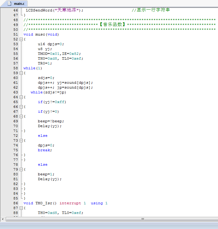 这里是播放MIDI音乐的函数,启用了定时器和定时器中断,需要播放不同的音乐,自己修改cont.h文件中的