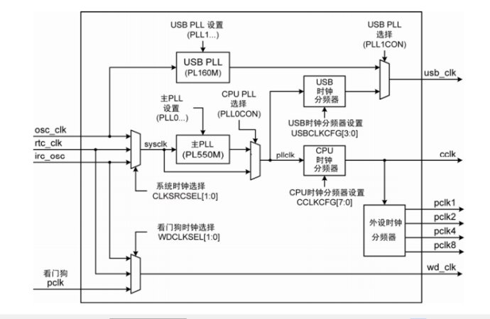 1、IC解密从下图可以看出外设时钟都是与内核系统时钟相连接的,所以不可以像很多单片机,pll选择内部振荡器,外设可以用外部晶振当时钟源![]() 2、IC解密在使能和链接PLL之前外设时钟必须要选择好,从sysinit()中可以看到下面一段话,初始值都为0,所以定时器的时钟源都是系统时钟cclk的四分之一,这个证明了从系统初始化的时候,所有外设的时钟源都已经规定好啦 ![]() 3、每次对PLL操作PLL0CFG和PLL0CON后都要输入反馈序列0xAA,0x55,才能生效,不管是PLL0和PLL1 4、例子程序默认外部晶振是12M,内核时钟是100M,IC解密默认是使用外部晶振 ,如果要修改外部晶振,但依然像保持 #define CCLKCFG_Val 0x00000003 LPC_SC->CCLKCFG = CCLKCFG_Val; 很明显,例子程序给的是选择外部晶振 |