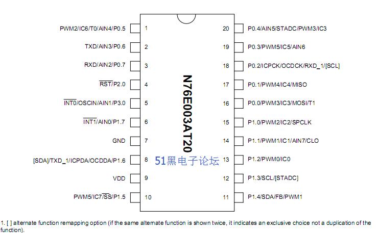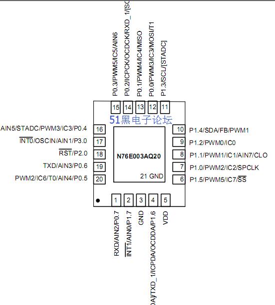单片机解密新唐N76E003AT20/N76E003AQ20引脚图